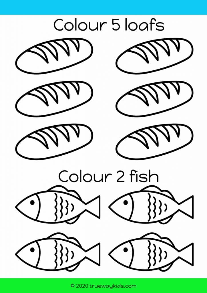 I try not to use color sheets, but i loved this quick one and used oyster crackers for the five loaves and goldfish for .
